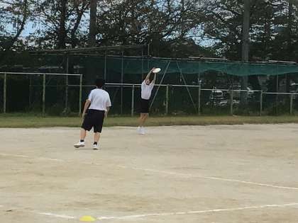 ディズクのスローイングとキャッチングの練習をしていました。