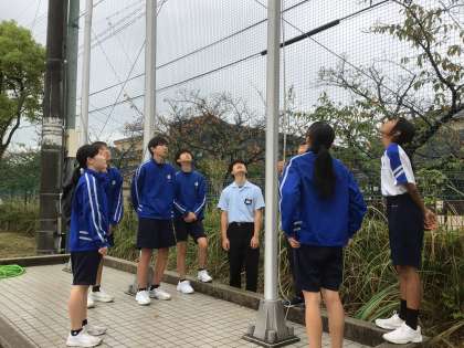 毎朝、生徒会役員の生徒が運動場の国旗掲揚等に旗を挙げています。
