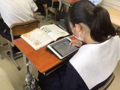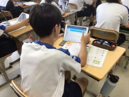 自転車に働くいろいろなエネルギーについて考察したことを、学習用タブレットにまとめていました。