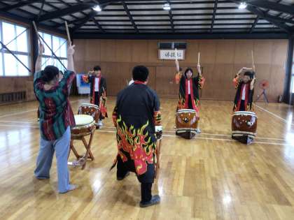 元気よく講師の方と太鼓を披露しました。
