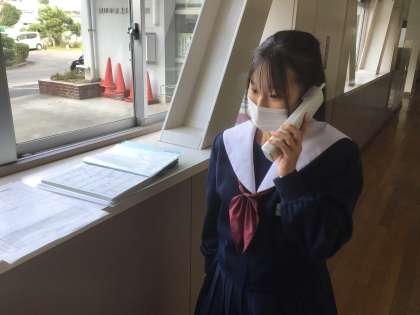 自治区長さんに、活動について電話で打ち合わせをしている生徒がいました。