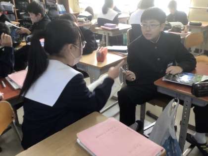 ペアをかえながら、会話のやりとりを練習しました。