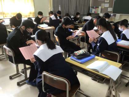 ペアで問題を出し合いながら、新出単語の確認をしていました。