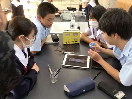 そのリトマス紙を回路につなぎ、電圧をかけると・・・。