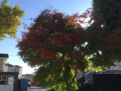 紅葉している部分もあれば、まだ緑色もあり、まばらな感じです。