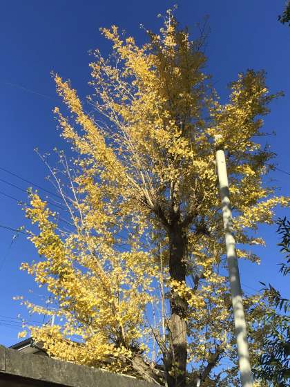 一方で、西側にあるイチョウは色づき、だいぶ葉が落ちていました。