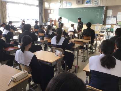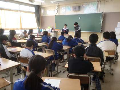 1年生は、上中タイムの時間に級長会主催の学習に関するキャンペーンを行っていました。