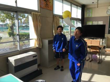 サーキュレーターで風船を浮かせていました。
