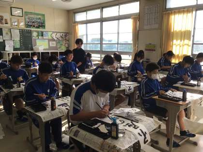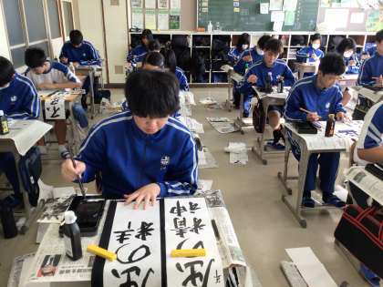 国語の時間、書き初めの練習をしていました。