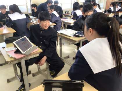 ペアを変えながら、現在進行形を使いながらクイズを出し合いました。
