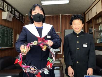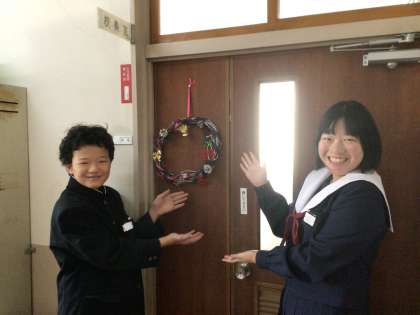 1学級の生徒が、クリスマスリースをプレゼントしてくれました。