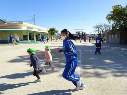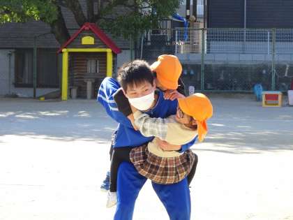 生徒たちは、常に園児の目線に立って一緒に遊びました。