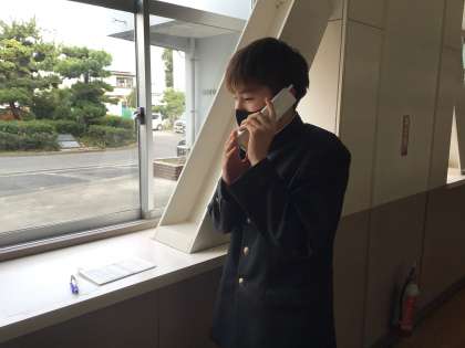 お昼の放課に区長様にお礼の電話をしている生徒がいました。