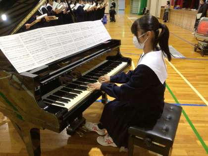 学級ごとに練習してきた歌声を、学年全体で合わせました。