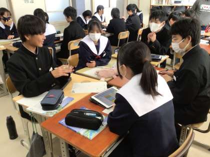グループ全員の考えを聞き、最終的にはグループの意見として1つにまとめていました。
