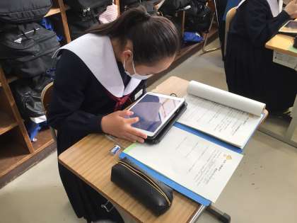 アンケート調査を待つ間に、まとめや発表原稿の作成を進める生徒もいました。