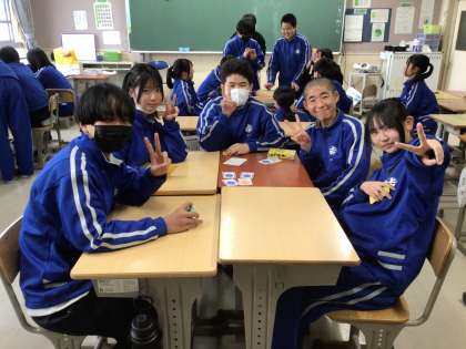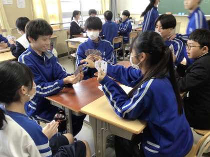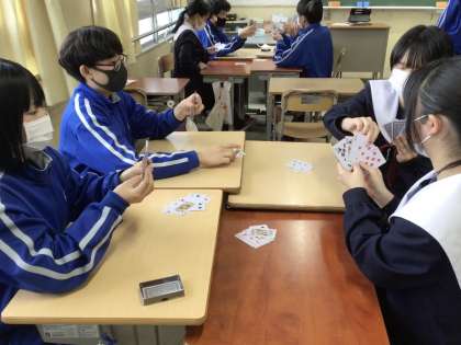 活動が早く終わり、カードゲームで楽しむ学級がありました。