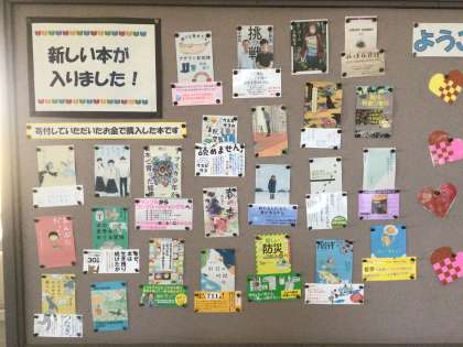 図書館司書の先生が、新刊の紹介を掲示板にしてくださいました。