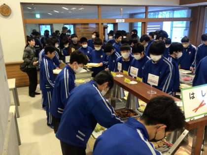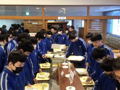 今日のスキー研修に備えて、しっかりとエネルギーを補給します。
