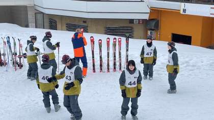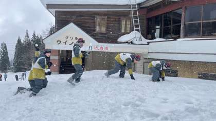 スキー研修の様子です。ちょっと休憩の間は遊んでます。