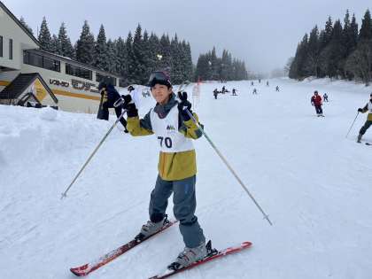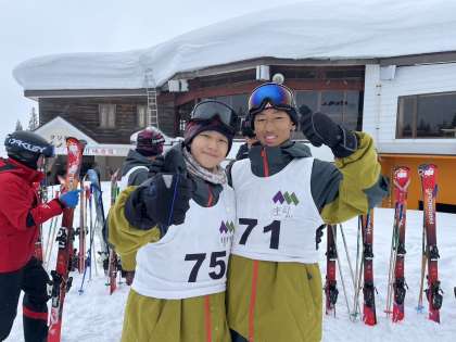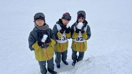 スキー研修の合間に雪と戯れています。
