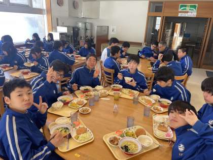 最後の食事ですが、みんな楽しそう。