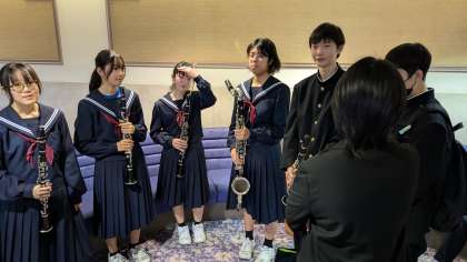 演奏後、写真撮影前に先生たちから声をかけられていました。
