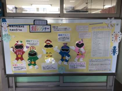 今、保健室前には、免疫レンジャーが掲示されています。