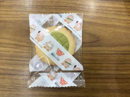 クッキーの袋に、たべまると博物館のロゴが印刷されていました。