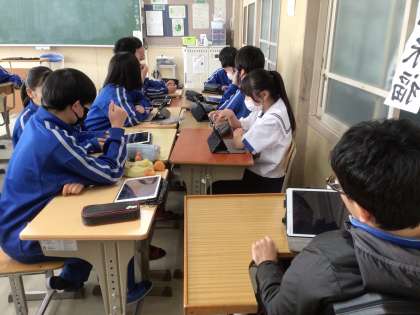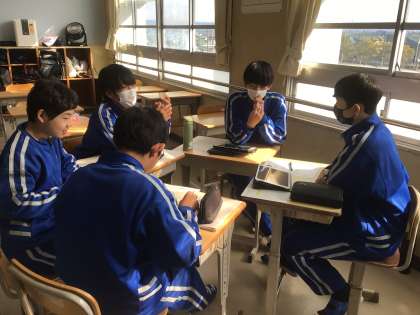 2年生が、それぞれの役割ごとに考えを出し合っていました。