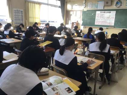 1年生です。 今日は、音楽、社会、数学のようです。