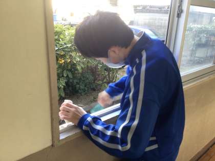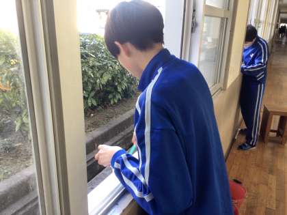 校舎では、窓のサンなど細かいところを、歯ブラシなどを活用して汚れを落としてくれました。