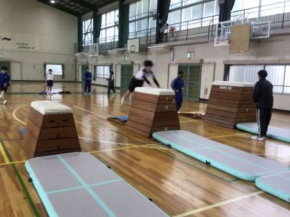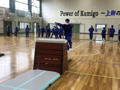 段数を自分で選び、開脚とびやかかえ込みとびに挑戦していました。