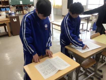 一度歌った後、今度は楽譜を見ながら練習をしました。