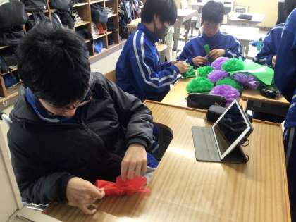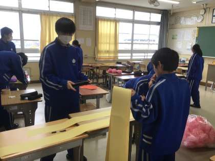 午後、1・2年生は卒業生を送る会の準備に取りかかっていました。