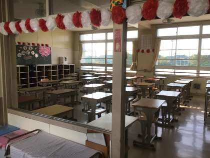 3年生の下駄箱も教室もがらんとしています。