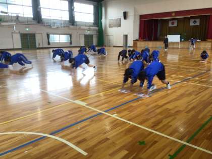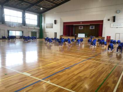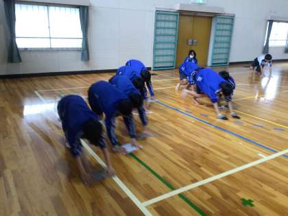 体育館のフロアも雑巾がけをしていました。