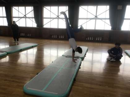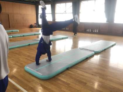 側方倒立回転やロンダートに挑戦していました。