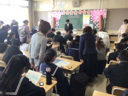 学級活動後に体育館で1年生の生徒に話を聞くと、式は緊張したりしなかったり、朝は自分で起きたり起こされたり・・・。