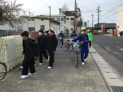 交通安全ボランティアの方も立哨し、生徒たちにあいさつをしてくださいました。