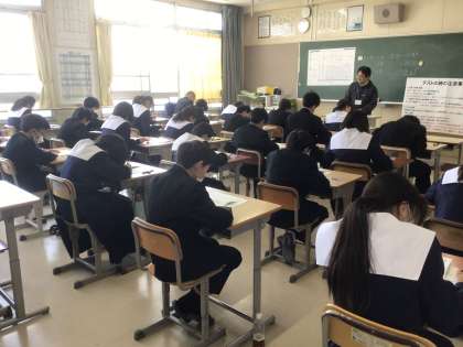 国語の学力テストに取り組んでいました。