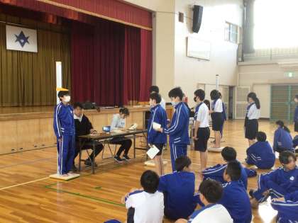 身長、体重、視力の測定を、静かに、整然と行っていました。