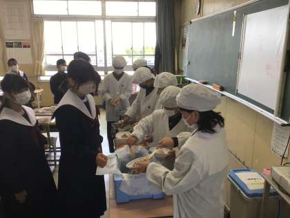 どの学級も身なりを整え、静かにテキパキと配膳していましたね。
