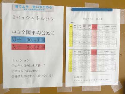 3年生の体育で、体力テストのシャトルランを行いました。