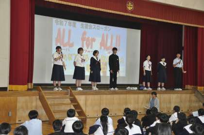 また、認証式の後には、生徒会のスローガン発表がありました。