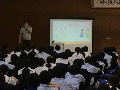 学年集会の形で、交通安全について話を聞きました。