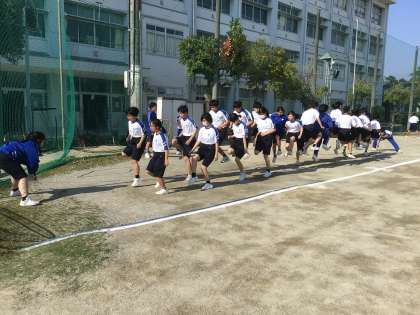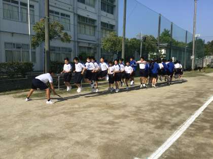 3年生がアドバイスをしたり、自らやって見せたり、学年が入り交じったりながら練習していました。