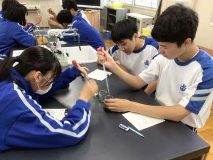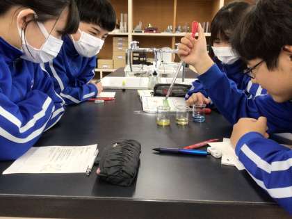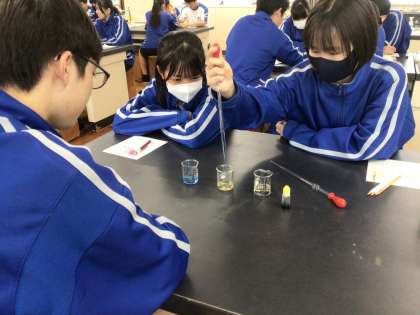 酸性とアルカリ性の水溶液を中和する実験を行いました。