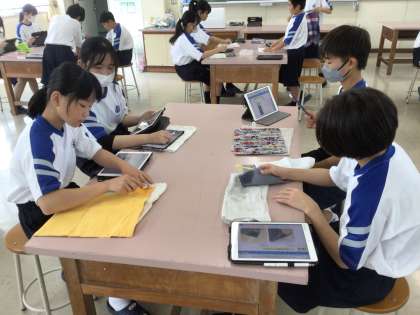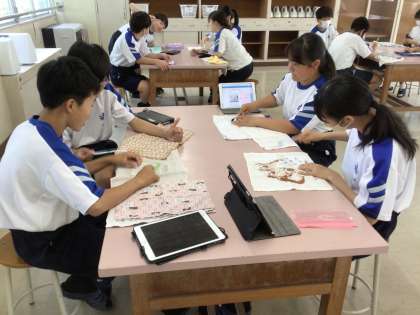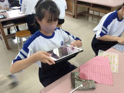 うまくできたら、学習用タブレットで写真を撮って記録します。
