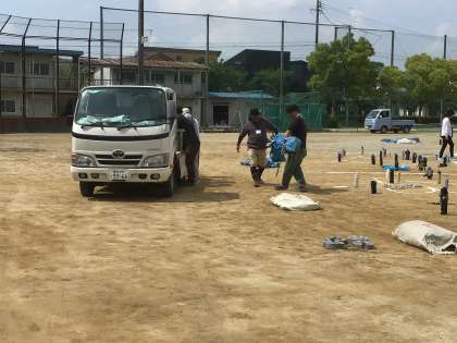 保護者や地域の方が、生徒席に設置するテントを運搬してくださいました。